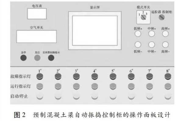 隨著我國道路建設的發展,橋梁工程在線路中的應用越來越多。受工期和場地的限制,大多數公路、鐵路橋采用預制梁。預制梁的施工質量是整個橋梁工程的關鍵,預制梁質量受多種因素影響,其中對梁的質量影響不可忽視的因素中包括制備混凝土的原材料及其施工工藝。插入式振搗和附著式振搗是目前混凝土澆筑時常用的方法,而混凝土振搗質量通常由有經驗的施人員控制,受人為因素影響較大。因此為減少或避免人為因素的影響,提高混凝土振搗機具的智能化和自動化程度勢在必行。混凝土澆筑的振搗質量對預制梁混凝土澆筑質量有重要的影響作用。本文在原有的振動器控制柜基礎上,編寫程序,增加控制功能,通過現場試驗嚴格控制了振搗時間,使混凝土振搗充分,既不漏振也不過振,提高了混凝土梁澆筑質量。